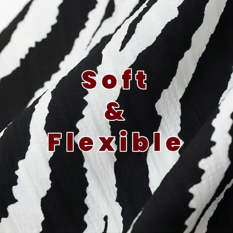 MODEL PATCHWORK: Prezintă un patchwork încântător de modele clasice negre și cu imprimeu zebră îndrăzneț, îmbinând eleganța atemporală cu o atingere de fler modern.
