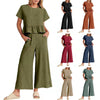 DESIGN ELEGANT CU TIV CU VOLANE:Topul cu mânecă scurtă și decolteu rotund are un tiv delicat cu volane, adăugând o notă feminină, în timp ce pantalonii cu picioare largi oferă o siluetă modernă. Perfect pentru crearea unui look șic, fără efort, care trece fără probleme de la zi la noapte.