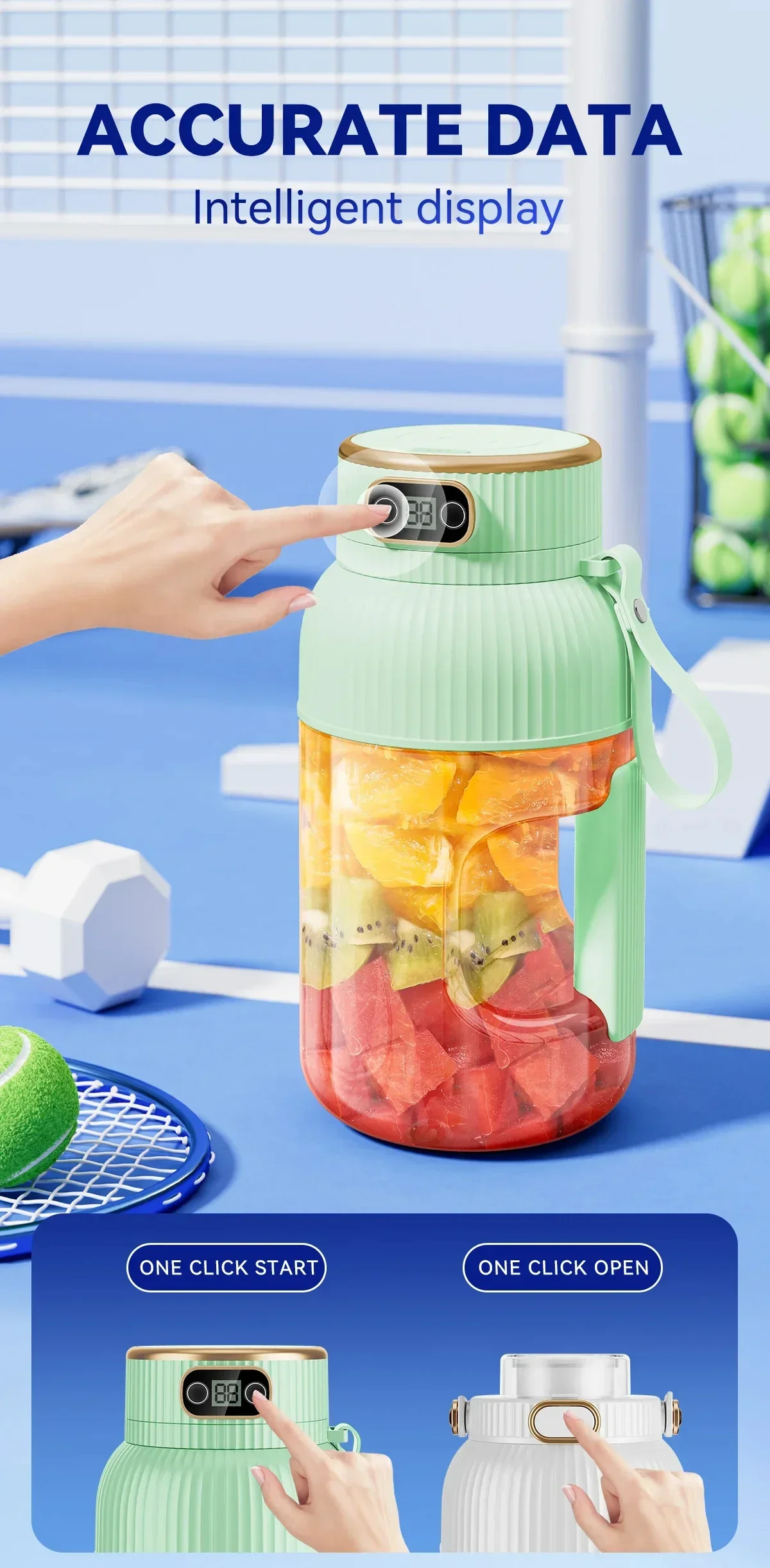 IDEA PROIECTULUI: Bucurați-vă de sucuri proaspete direct din pahar! Acest design versatil elimină nevoia de recipiente separate și este ideal pentru smoothie-uri, sucuri și shake-uri proteice.