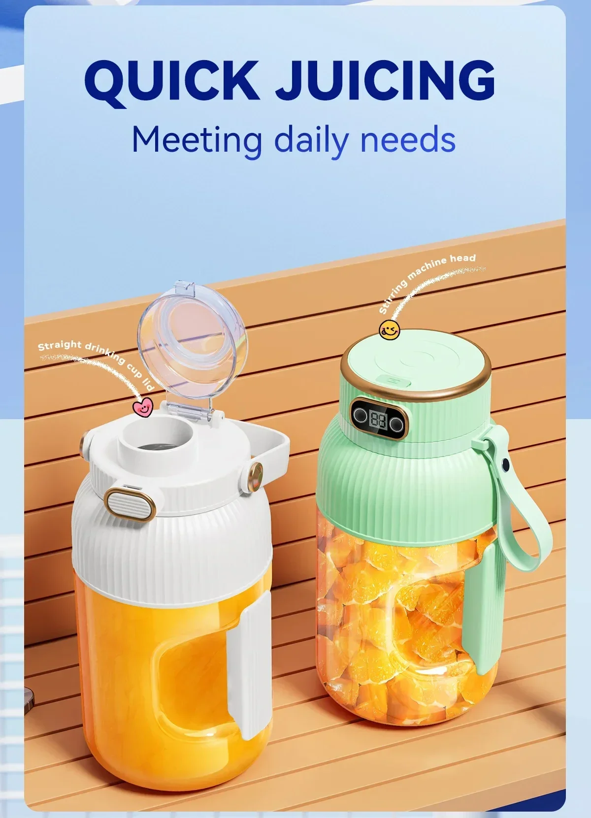 CAPACITATE MARE: Cu capacitatea sa amplă, această ceașcă juicer vă va satisface nevoile zilnice de hidratare, permițându-vă să faceți suc toată ziua fără reumpleri constante.