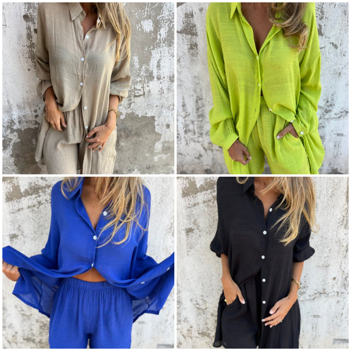 DESIGN CASUAL ȘI CHIC - Acest set din două piese include o cămașă elegantă cu mânecă lungă și pantaloni scurți asortați, îmbinând perfect confortul și moda. Ideal pentru ieșiri casual, brunch-uri sau relaxare acasă.