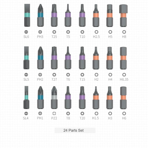 👉 24 biți de șurubelniță din oțel aliat S2 crom-molibden de calitate industrială, tratament termic continuu. 5 tipuri de capete de șurubelniță, pentru a satisface nevoile de utilizare profesională, viața de acasă, muncă, DIY și întreținere. Design cu clichet de 6,2 grade care economisește munca, structură cu clichet cu rotație pozitivă și negativă cu 58 de dinți, economisește 80% efort.👨🔧