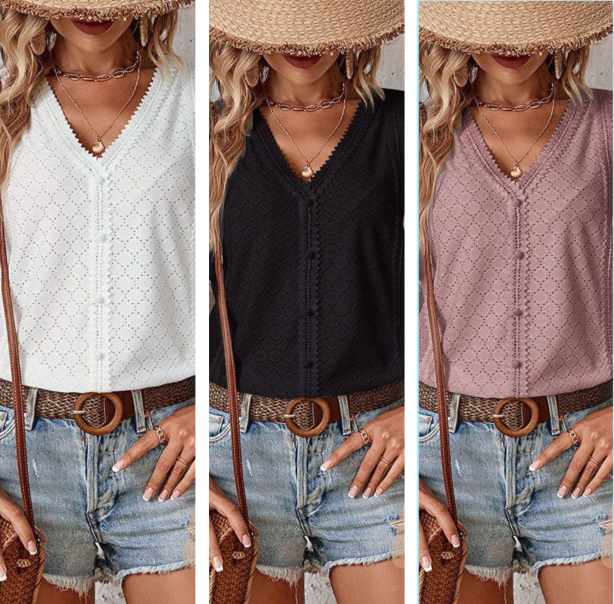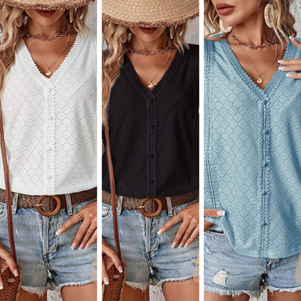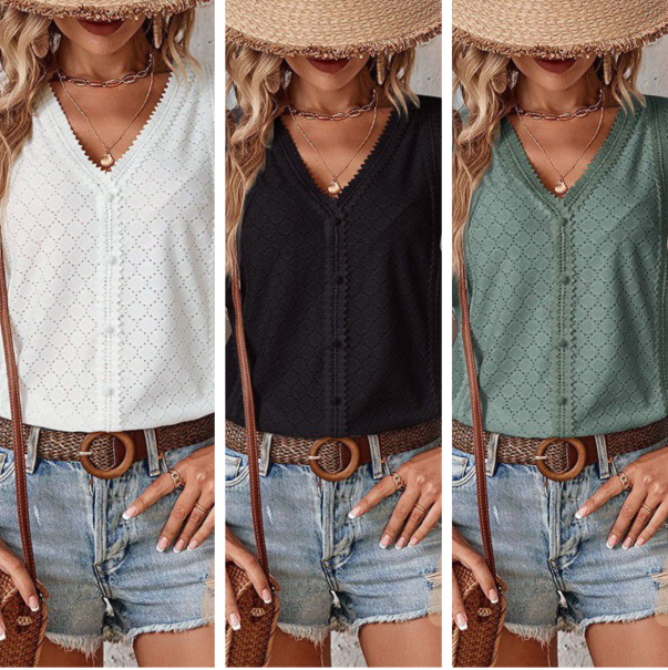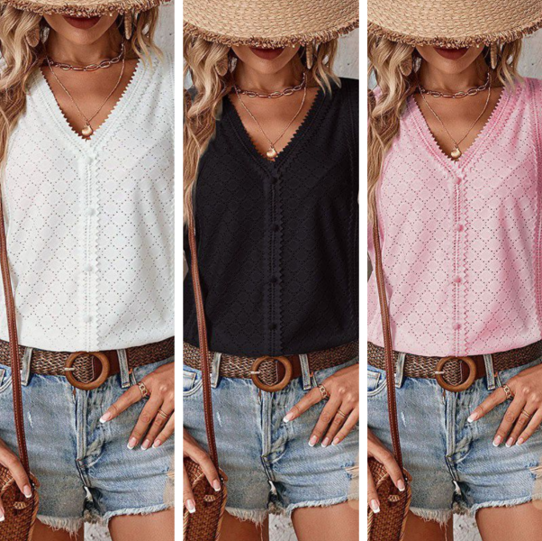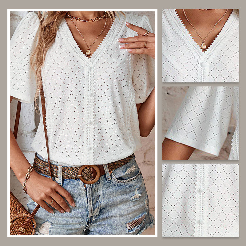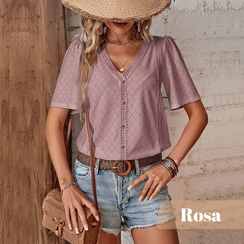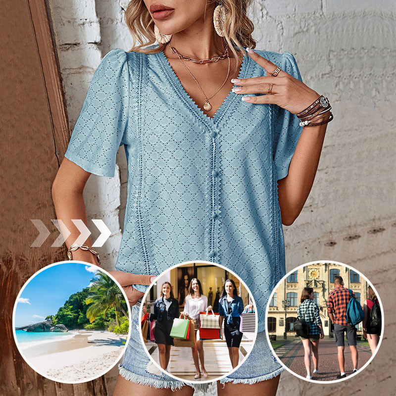 🎯 STIL - Oferiți look-ului dvs. acel ceva anume cu decolteul în V, croiala cu nasturi, detaliile decupate și tivul ondulat. Designul elegant face din această bluză un must-have la modă pentru garderoba ta de vară.