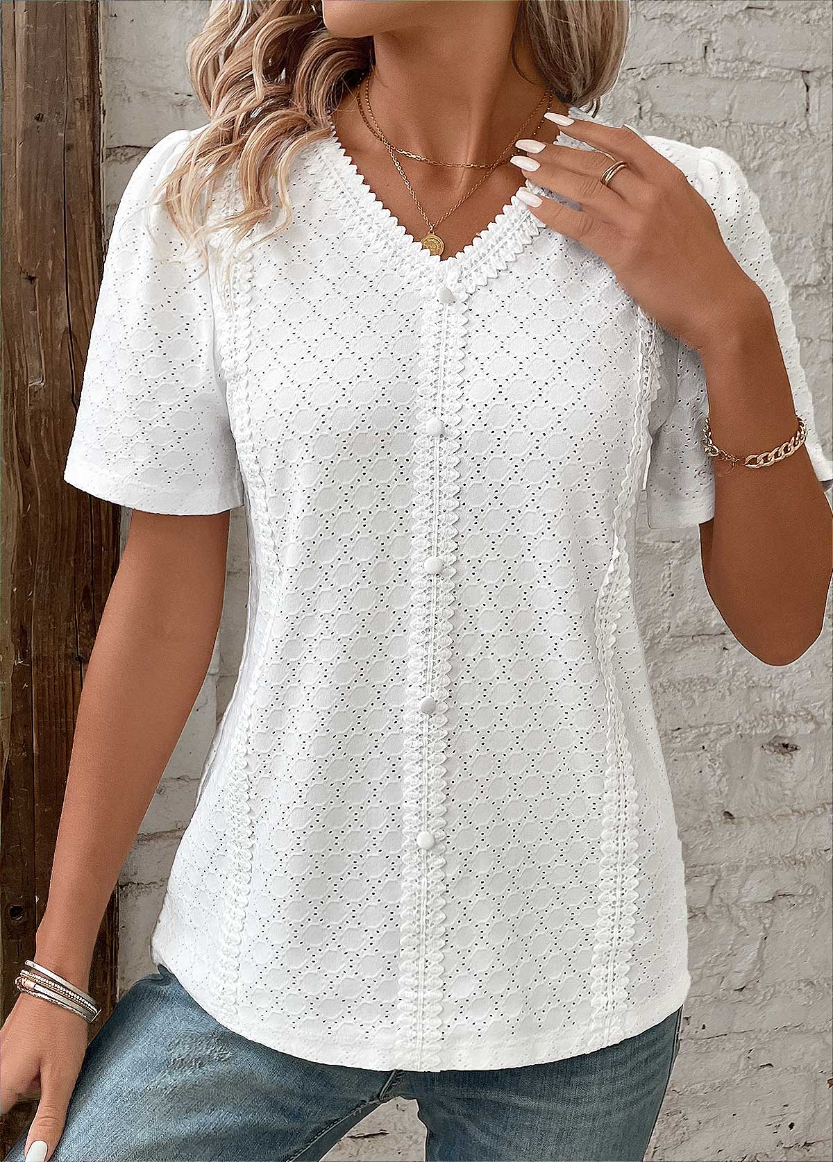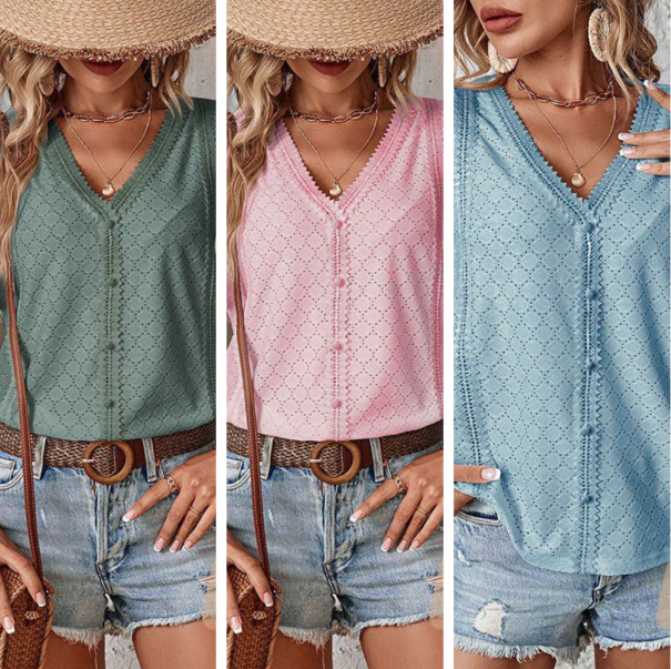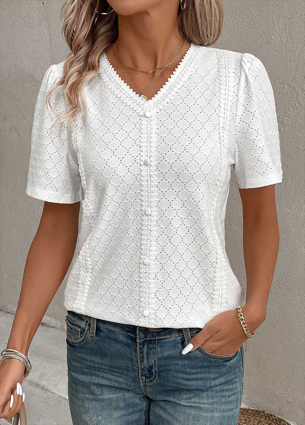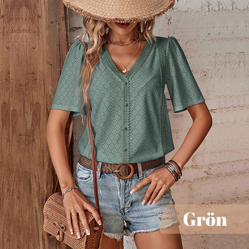 🎯 STIL - Oferiți look-ului dvs. acel ceva anume cu decolteul în V, croiala cu nasturi, detaliile decupate și tivul ondulat. Designul elegant face din această bluză un must-have la modă pentru garderoba ta de vară.