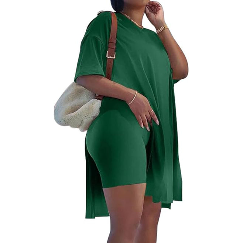 Pachetul include: 1: 1 * Rochie solidă pentru femei cu gât rotund & Set de pantaloni scurți
