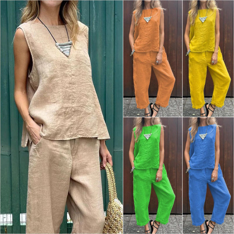 1 * Ținuta de damă din 2 piese Top lejer fără mâneci și pantaloni lungi